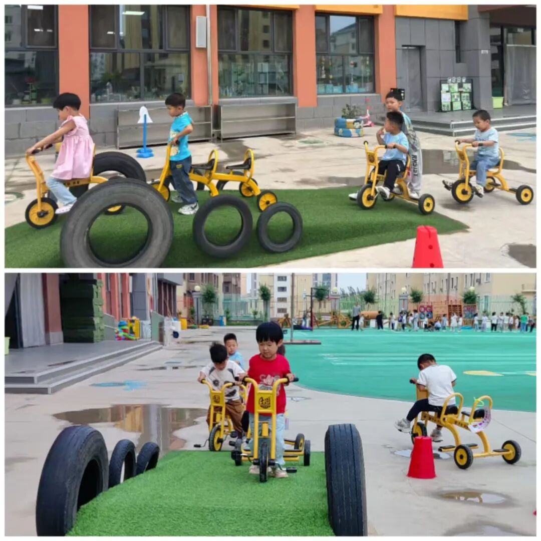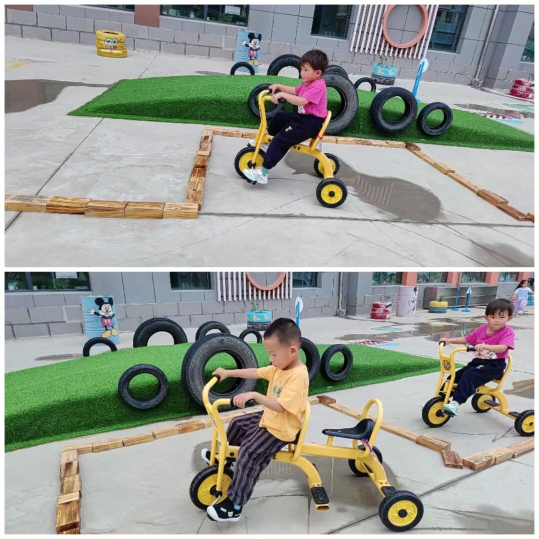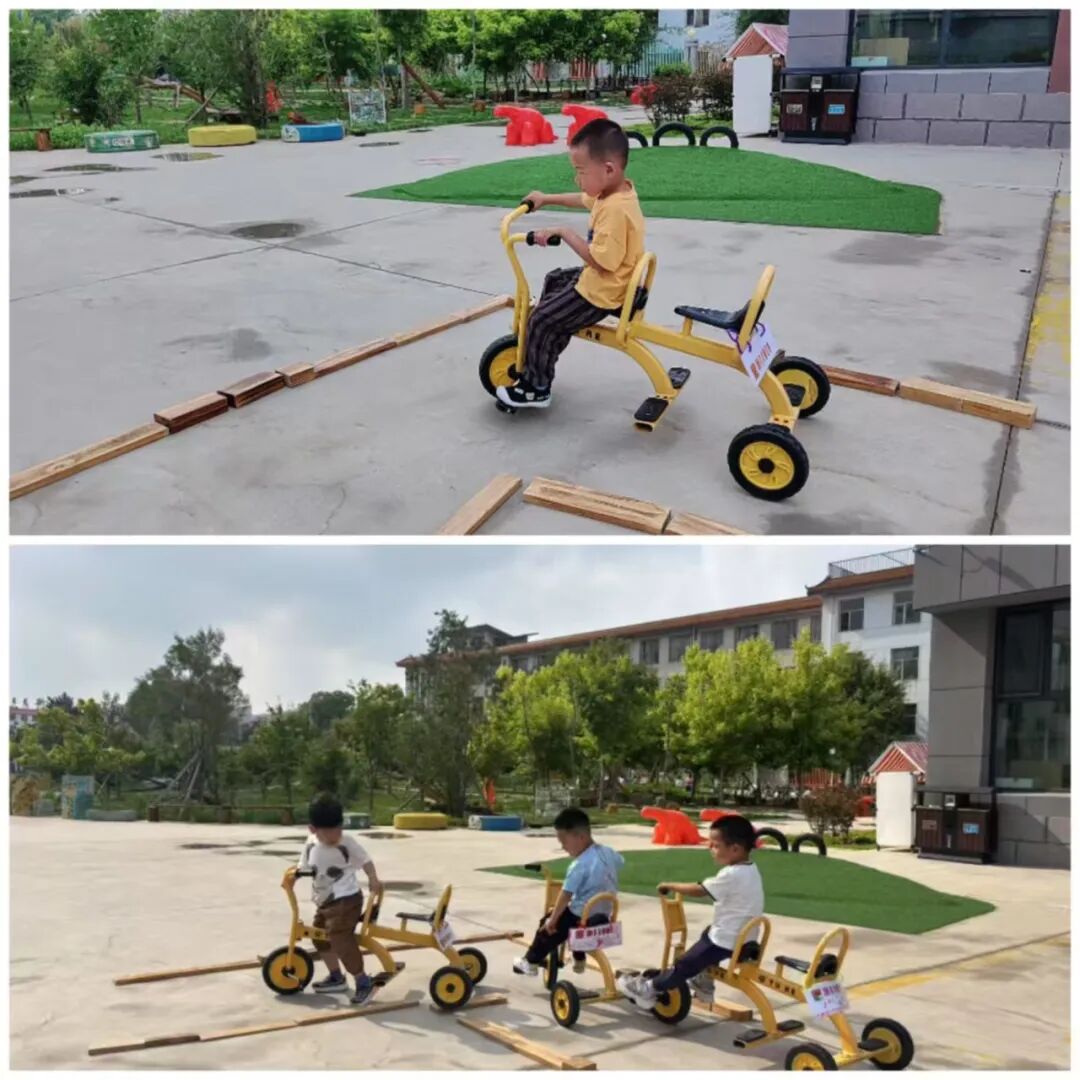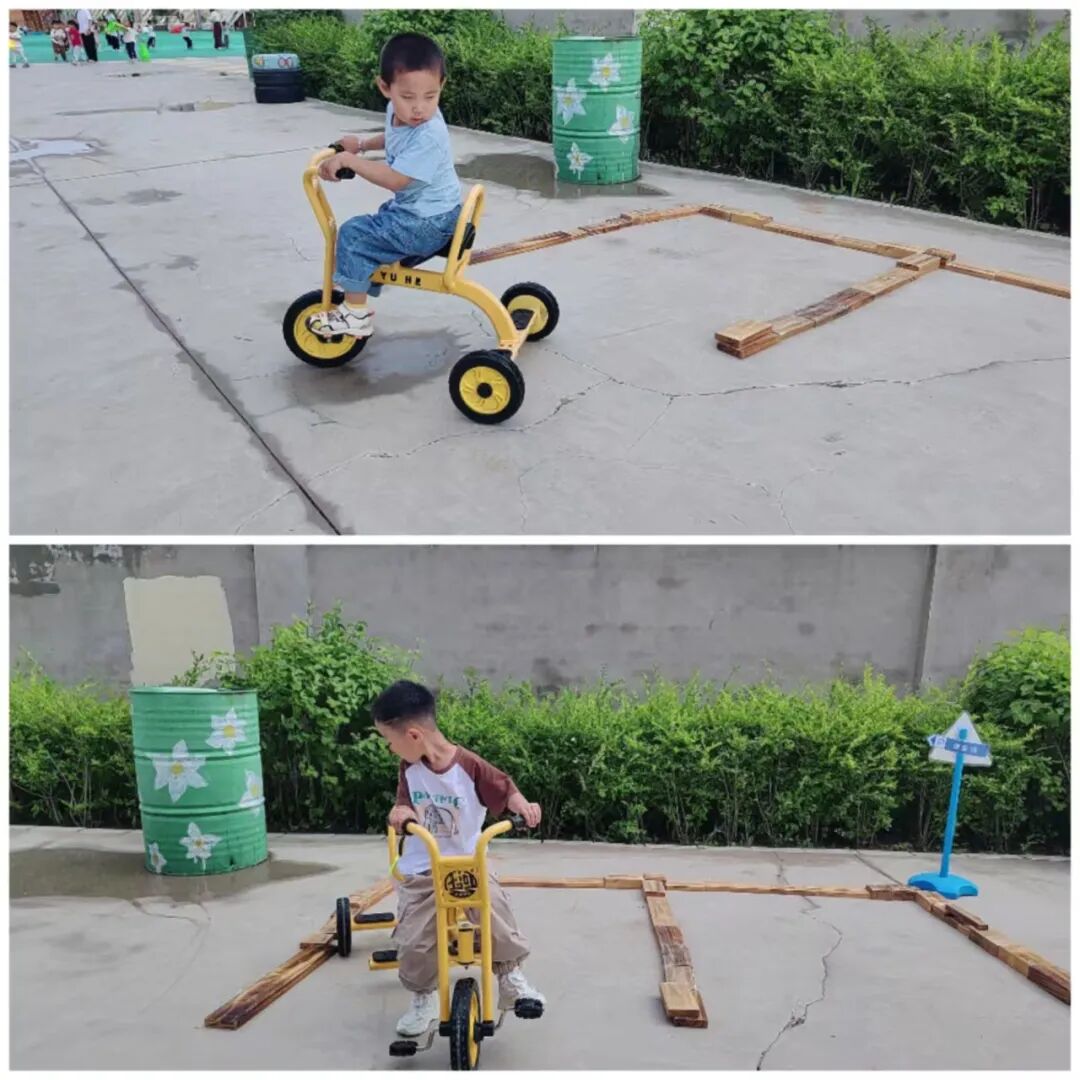 The kindergarten was inspired by this and carefully planned the cycling track based on the layout and facilities of the small bicycle track.