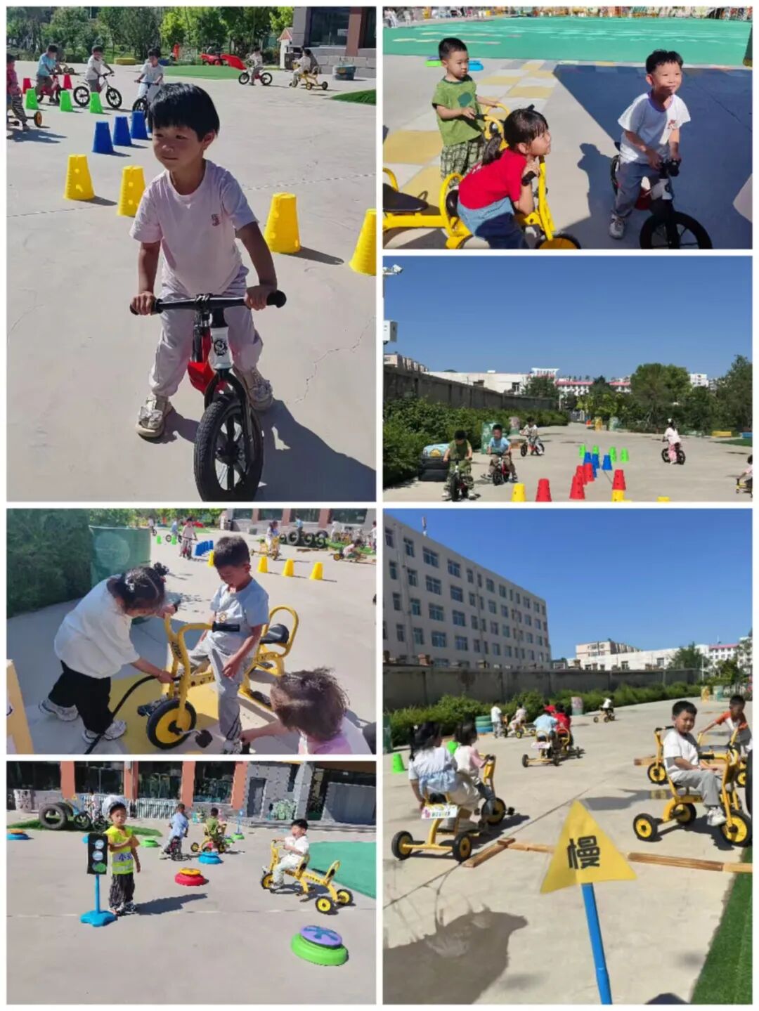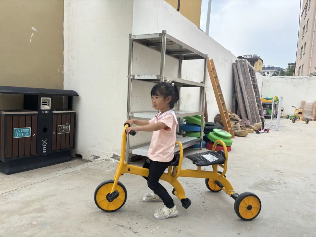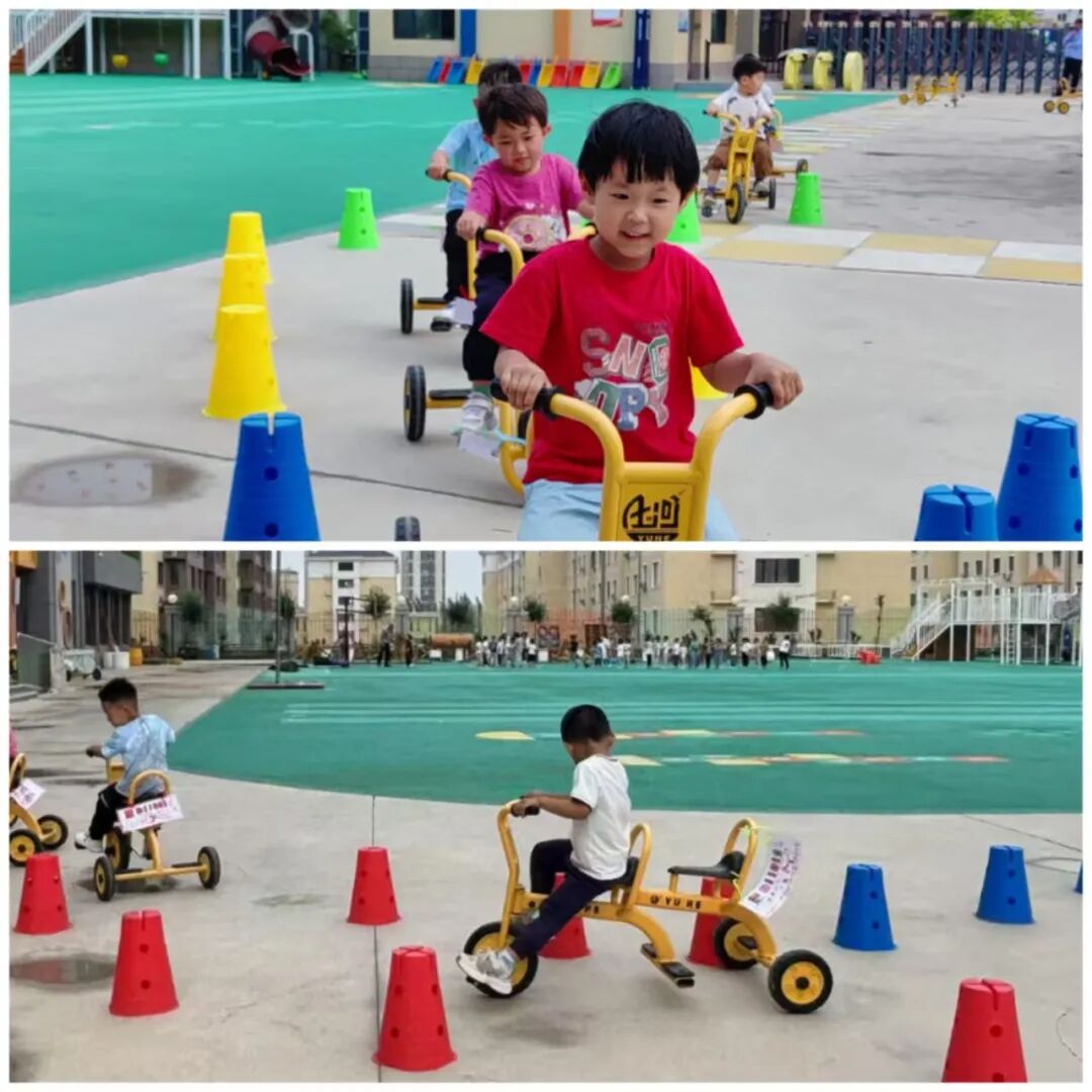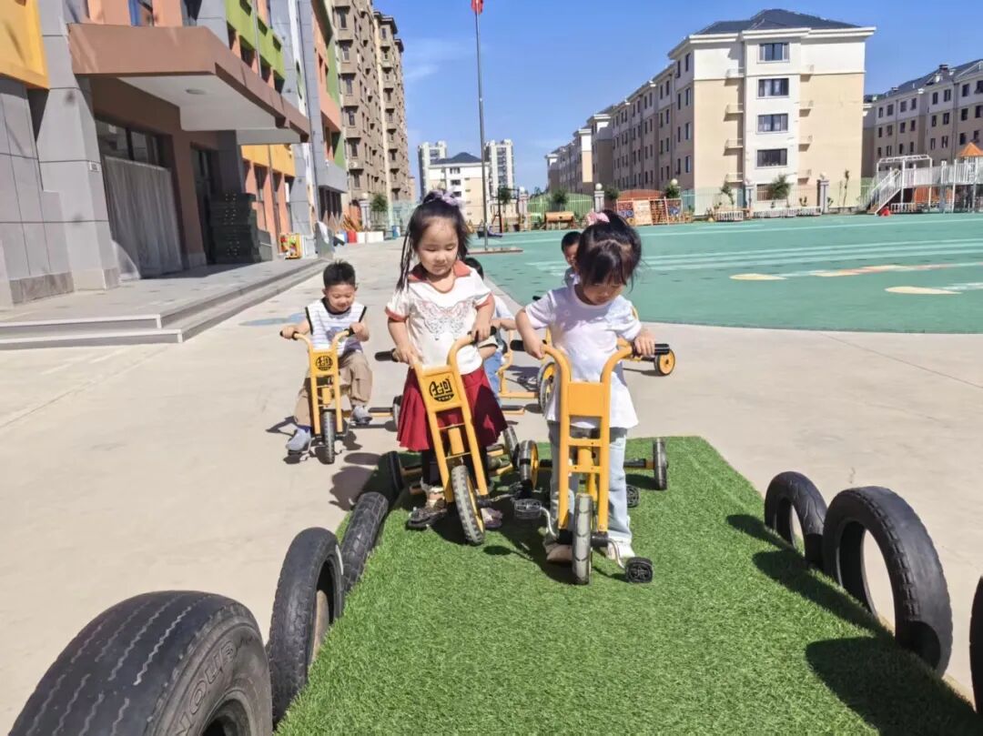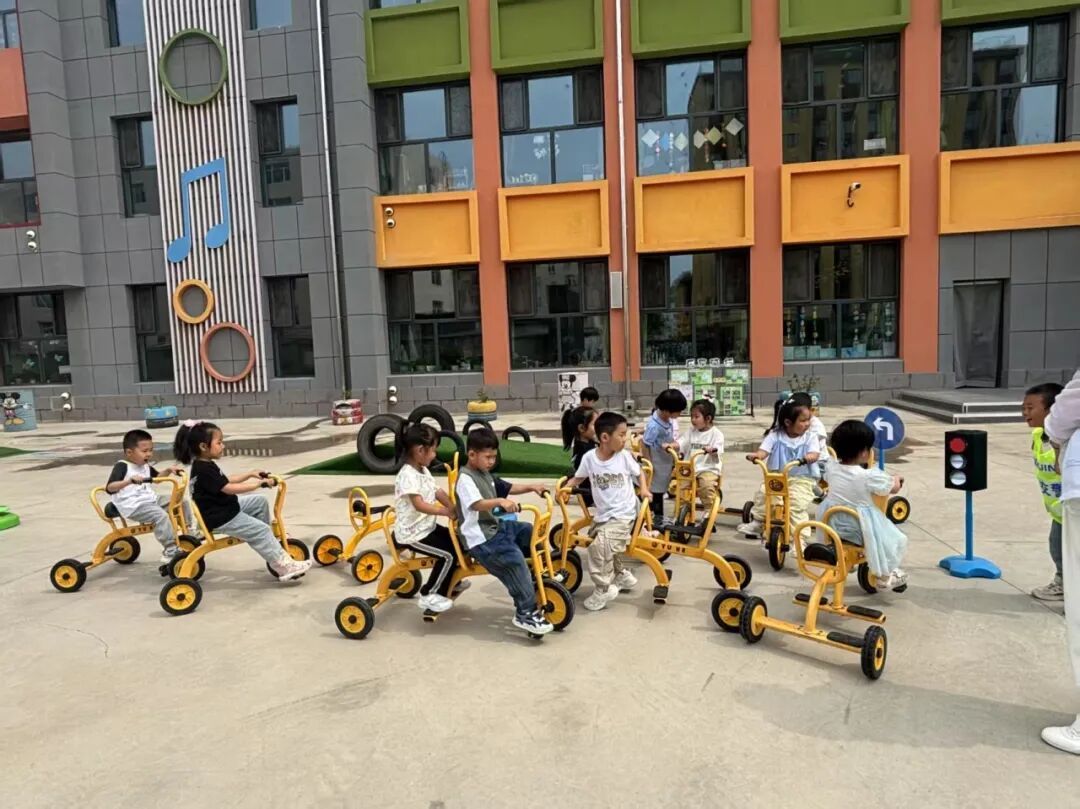 The kindergarten was inspired by this and carefully planned the cycling track based on the layout and facilities of the small bicycle track.